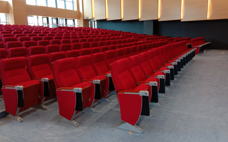 座垫回弹机构:采用扭簧+阻力器自动回弹装置,观众离座时,座垫自动缓慢回弹、回弹过程绝无冲击和噪声,保持场所的静音效果,使用寿命达50万次以上。
